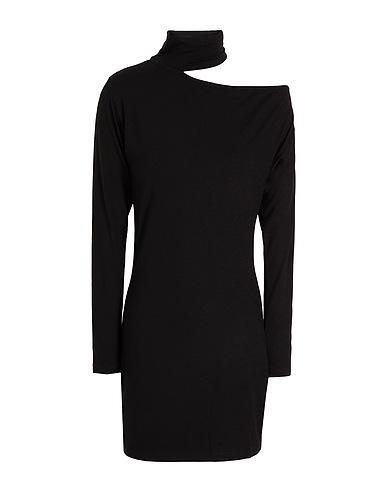 jersey, cutout, solid color, turtleneck, long sleeves, unlined, stretch, bodycon dress