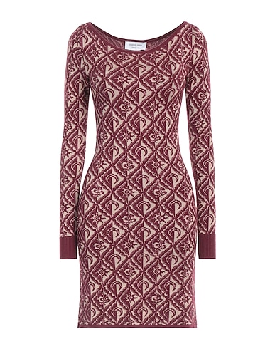 knitted, lightweight knit, no appliqués, two-tone, crewneck, long sleeves, unlined, without pockets, hand wash or dry clean, do not bleach, do not tumble dry, bodycon dress