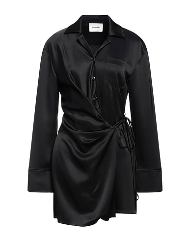 shirt dress, satin, solid color, no appliqués, lapel collar, long sleeves, unlined, one chest pocket, hand wash or dry clean, do not bleach, do not tumble dry, amp up the glamour with chic designer party outfits for your next event or fun night out