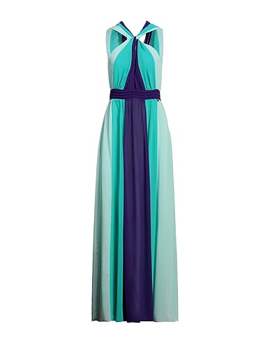 flared dress, crepe, multicolor, brand logo, open back, gathered, deep neckline, sleeveless, fully lined, zipper fastening, hand wash or dry clean, do not bleach, do not tumble dry