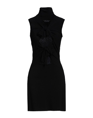 knitted, lightweight knit, bow-detailed, solid color, turtleneck, sleeveless, without pockets, dry clean, do not bleach, do not tumble dry, flared dress
