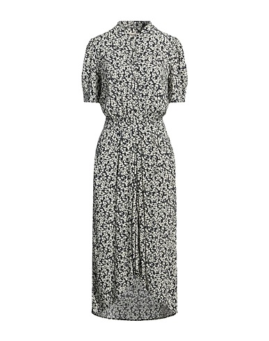 asymmetric dress, crepe, floral-print, gathered, mandarin collar, short sleeves, unlined, button fastenings, pockets, hand wash or dry clean, do not bleach, do not tumble dry