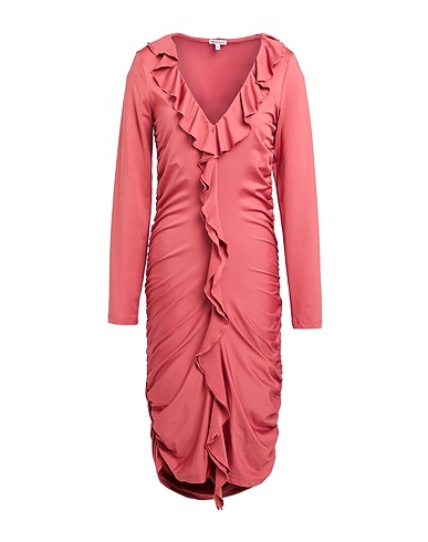 bodycon dress, synthetic jersey, solid color with appliqués, ruffles, gathered, deep neckline, long sleeves, unlined, without pockets, stretch, machine wash, do not bleach, do not tumble dry