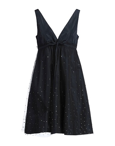 flared dress, taffeta, tulle, solid color with appliqués, crystals, deep neckline, sleeveless, tie fastening, hand wash or dry clean, do not bleach, do not tumble dry