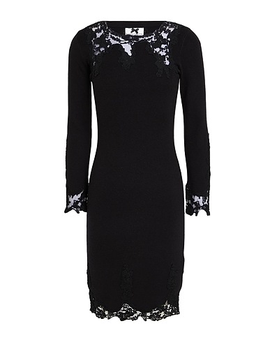 bodycon dress, knitted, lightweight knit, solid color, lace trims, crewneck, long sleeves, hand wash or dry clean, do not bleach, do not tumble dry