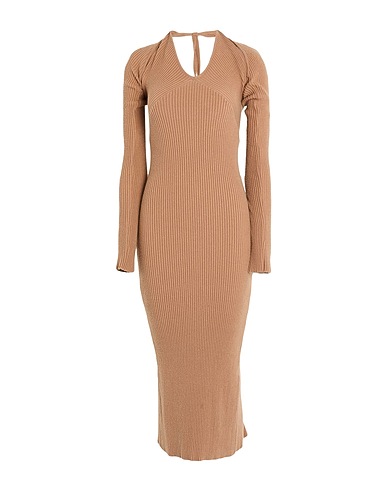bodycon dress, ribbed-knit, lightweight knit, solid color, cutout, halterneck, long sleeves, tie fastening, rear slit, 2-piece set, hand wash or dry clean, do not bleach, do not tumble dry