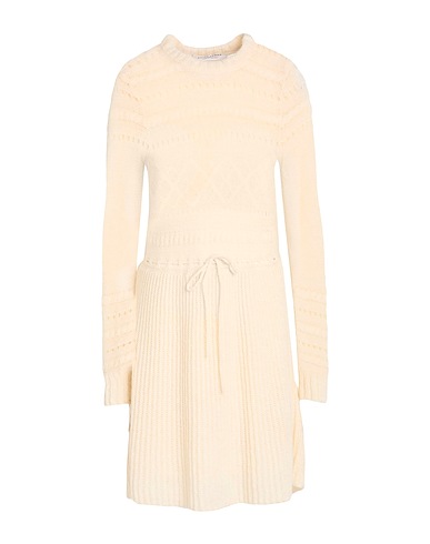 flared dress, knitted, lightweight knit, solid color, no appliqués, crewneck, long sleeves, fully lined, dry clean, do not bleach, do not tumble dry