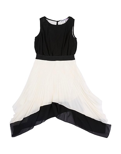 crepe, two-tone, pleated, brand logo, deep neckline, sleeveless, fully lined, zipper fastening, dry clean, do not bleach, do not tumble dry