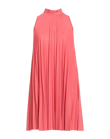 pleated dress, knitted, lightweight knit, metallic, stretchy fabric, solid color, brand logo, mock neck, sleeveless, unlined, button fastenings, hand wash or dry clean, do not bleach, do not tumble dry, be the best-dressed bridesmaid or wedding guest with this designer piece, perfect for any ceremony