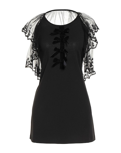 bodycon dress, jersey, lace, stretchy fabric, solid color with appliqués, bow-detailed, crewneck, sleeveless, unlined, hand wash, do not bleach, tumble dry, amp up the glamour with chic designer party outfits for your next event or fun night out
