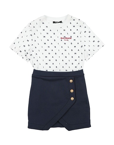 jersey, french terry, logo-print, button-embellished, crewneck, short sleeves, elasticized waist, machine wash, do not bleach, do not tumble dry
