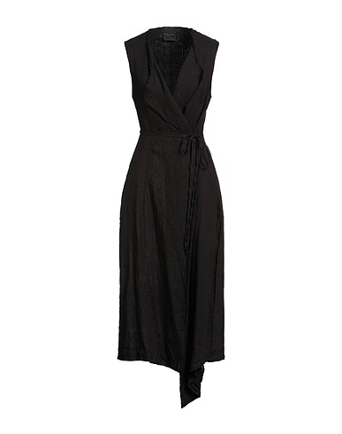 wrap dress, linen, solid color, no appliqués, lapel collar, sleeveless, tie fastening, slit pockets, machine wash or dry clean, do not bleach, do not tumble dry, power dressing meets elegance in this chic office outfit that will inspire confidence every day