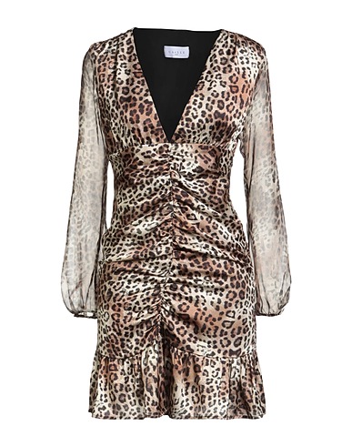 bodycon dress, satin, georgette, leopard-print, gathered, deep neckline, long sleeves, fully lined, zipper fastening, machine wash, do not bleach, do not tumble dry, amp up the glamour with chic designer party outfits for your next event or fun night out