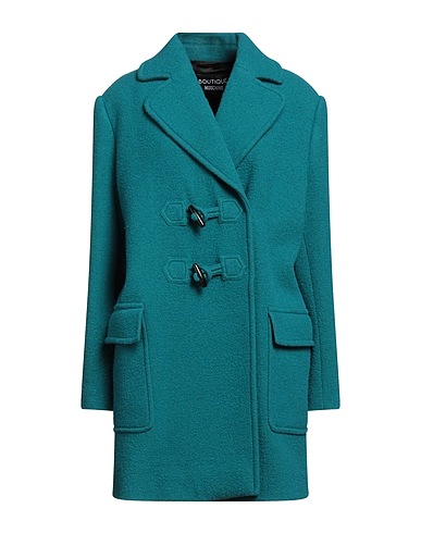 double-breasted coat, tweed, embellished, brand logo, solid color with appliqués, classic collar, long sleeves, fully lined, snap fastenings, flap pockets, dry clean, do not bleach, do not tumble dry