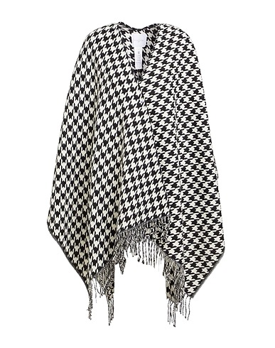knitted, lightweight knit, fringes, brand logo, houndstooth, v-neck, sleeveless, without pockets, machine wash or dry clean, do not bleach, do not tumble dry, wrap cape