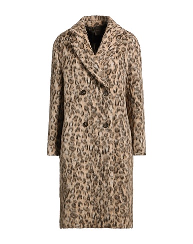 double-breasted coat, brushed-felt, no appliqués, leopard-print, lapel collar, long sleeves, fully lined, button fastenings, multipockets, dry clean, do not bleach, do not tumble dry