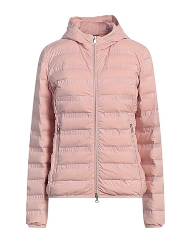 down jacket, shell, quilted, solid color, brand logo, hooded, single-breasted , long sleeves, duck down filling, zipper fastening, zipped pockets, stretch, contains non-textile parts of animal origin, machine wash or dry clean, do not bleach, tumble dry