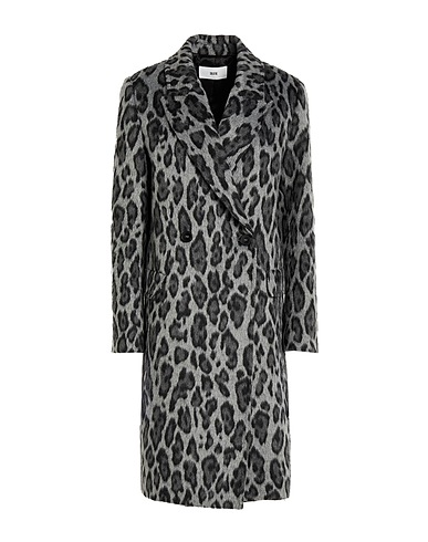 double-breasted coat, brushed-felt, no appliqués, leopard-print, lapel collar, long sleeves, shoulder pads, buttoned cuffs, fully lined, button fastenings, flap pockets, rear slit, dry clean, do not bleach, do not tumble dry