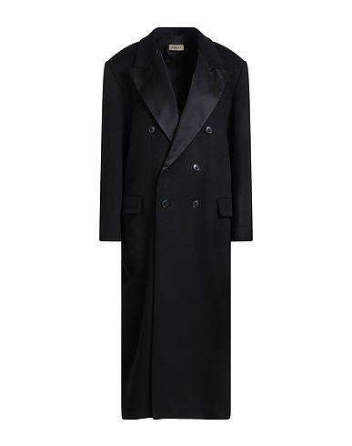 double-breasted coat, brushed-felt, satin trims, solid color, lapel collar, long sleeves, fully lined, button fastenings, slit pockets, dry clean, do not bleach, do not tumble dry, this brand runs large, power dressing meets elegance in this chic office outfit that will inspire confidence every day