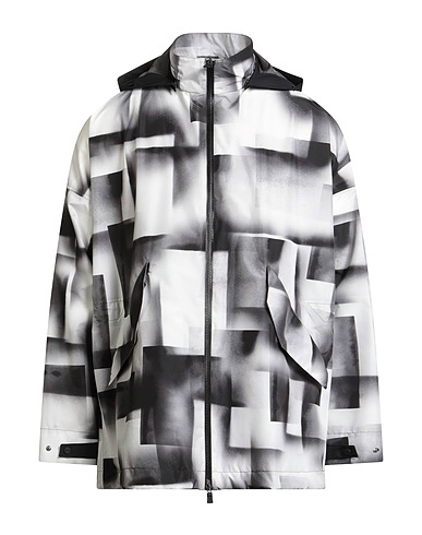 casual jacket, shell, no appliqués, geometric-print, detachable hood, long sleeves, unlined, zipper fastening, flap pockets, dry clean, do not bleach, do not tumble dry