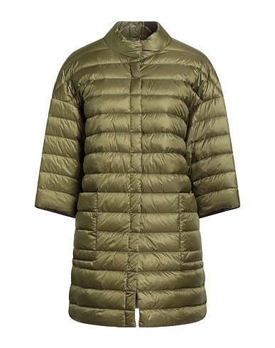 down jacket, shell, brand logo, solid color, crewneck, 3/4 length sleeves, goose down interior, lightweight padding, snap fastenings, patch pockets, contains non-textile parts of animal origin, machine wash, do not bleach, do not tumble dry