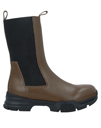 chelsea boots, leather, solid color, no appliqués, fully lined, elasticized inserts, round toe, square heel, rubber cleated sole, contains non-textile parts of animal origin
