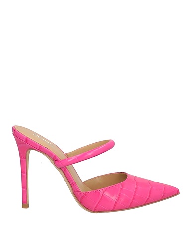 mules, leather, crocodile-print, brand logo, leather lining, pointed toe, spike heel, rubber sole, contains non-textile parts of animal origin