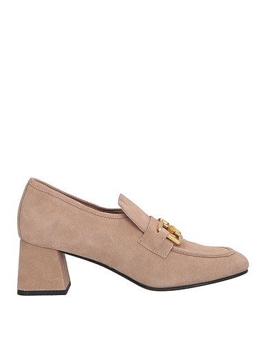 loafers, suede, solid color with appliqués, buckle, leather lining, round toe, cone heel, covered heel, rubber sole, contains non-textile parts of animal origin