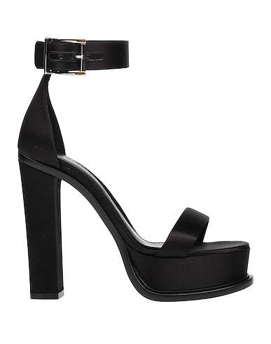 satin, no appliqués, solid color, leather lining, buckling ankle strap closure, round toeline, square heel, covered heel, leather sole, contains non-textile parts of animal origin, ankle strap sandals