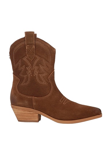 western ankle boots, suede, embroidered, brand logo, solid color with appliqués, fabric inner, pointed toe, cuban heel, rubber sole, contains non-textile parts of animal origin