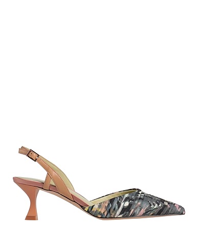 slingback pumps, woven, floral-print, no appliqués, leather lining, pointed toe, spool heel, rubber sole, contains non-textile parts of animal origin