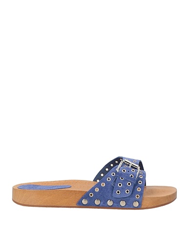 slide sandals, suede, solid color with appliqués, metal applications, buckle, round toe, flat, rubber sole, leather lining, contains non-textile parts of animal origin, small sized