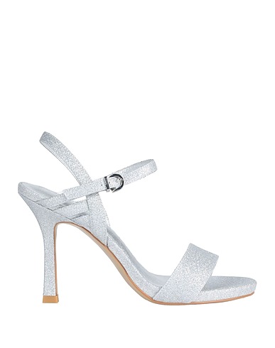 ankle strap sandals, glittered, no appliqués, solid color, leather lining, buckle-fastening ankle strap, round toe, spike heel, rubber sole, contains non-textile parts of animal origin