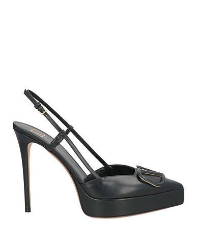 slingback pumps, leather, solid color with appliqués, logo-embellished, platform, buckle fastening, pointed toe, stiletto heel, leather lining, leather sole, contains non-textile parts of animal origin