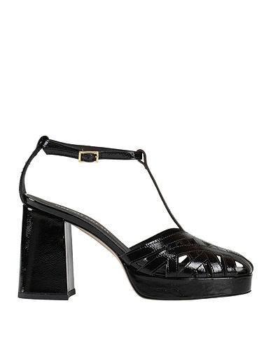 patent leather, no appliqués, solid color, leather lining, buckle-fastening ankle strap, round toe, square heel, covered heel, rubber sole, contains non-textile parts of animal origin, ankle strap sandals