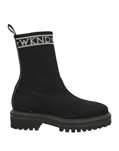 knitted, brand logo, solid color, fabric inner, round toe, square heel, lug sole, handmade, sock ankle boots