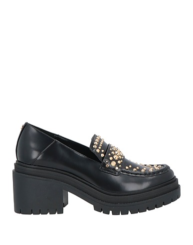leather, studs, solid color with appliqués, leather lining, round toe, square heel, rubber cleated sole, contains non-textile parts of animal origin, chunky loafers