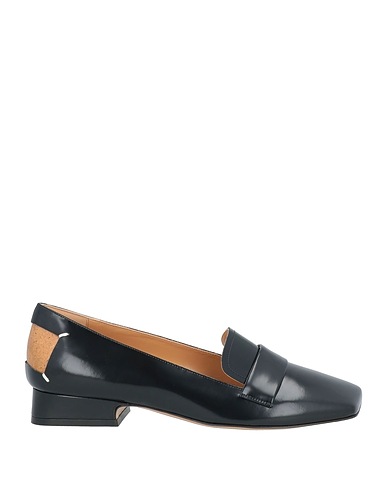 glossed-leather, brand logo, solid color, leather lining, square toe, square heel, leather/rubber sole, contains non-textile parts of animal origin, loafers