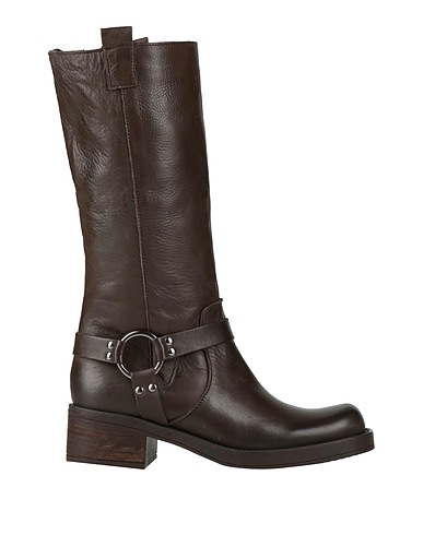 leather, strap detailing, solid color, leather lining, round toe, square heel, rubber sole, contains non-textile parts of animal origin, boots