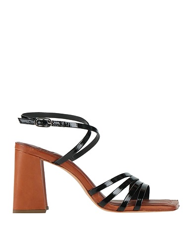 ankle strap sandals, patent leather, solid color, no appliqués, leather lining, buckle-fastening ankle strap, square toe, square heel, leather sole, contains non-textile parts of animal origin