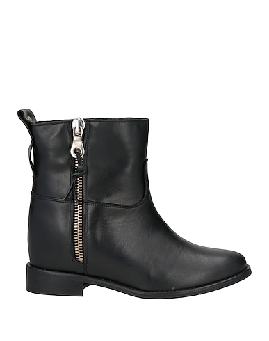 calf boots, leather, no appliqués, solid color, leather lining, zipper fastening, round toe, flat, rubber sole, contains non-textile parts of animal origin