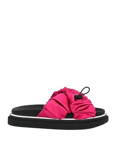 sandals, satin, gathered, solid color, fully lined, round toe, flat, flatform