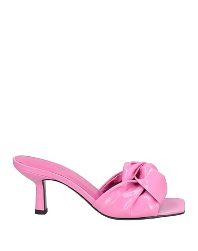 slide sandals, patent leather, no appliqués, solid color, leather lining, square toe, spool heel, leather sole, contains non-textile parts of animal origin