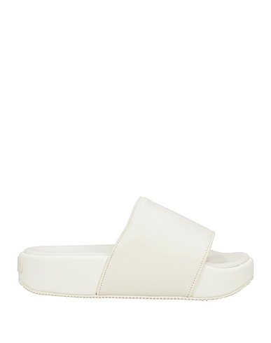 slide sandals, pebbled-leather, no appliqués, solid color, leather lining, round toe, wedge heel, covered wedge, rubber cleated sole, contains non-textile parts of animal origin, small sized