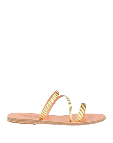 sandals, leather, metallic, solid color, no appliqués, leather lining, round toe, flat, leather/rubber sole, contains non-textile parts of animal origin