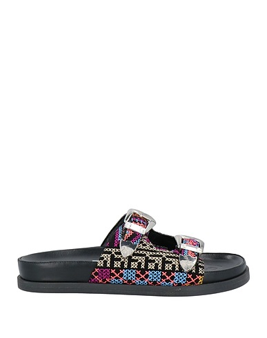 sandals, velvet, multicolor, embroidered, leather lining, buckle fastening, round toe, flat, rubber cleated sole, contains non-textile parts of animal origin