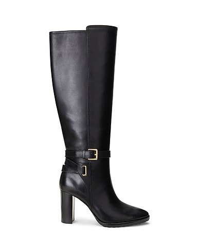 boots, leather, solid color with appliqués, strap detailing, leather lining, zipper fastening, elasticized inserts, round toe, square heel, leather/rubber sole, contains non-textile parts of animal origin