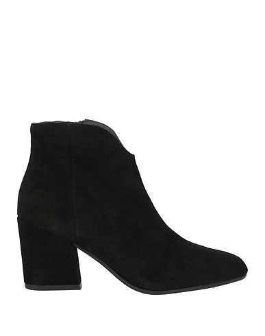 ankle boots, suede, solid color, no appliqués, leather lining, zipper fastening, pointed toe, geometric heel, covered heel, rubber sole, contains non-textile parts of animal origin