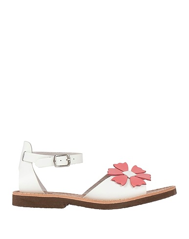 ankle strap sandals, leather, solid color with appliqués, floral appliqués, leather lining, buckle-fastening ankle strap, round toe, flat, rubber sole, contains non-textile parts of animal origin