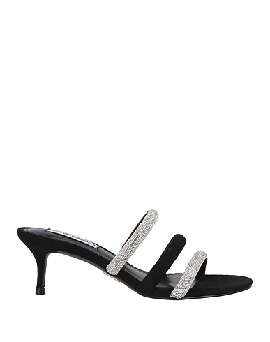 sandals, woven, solid color with appliqués, crystals, fully lined, round toe, kitten heel, rubber sole